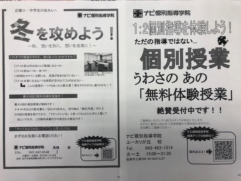 11月15日に新松戸南中の近くで無料体験授業のチラシを配布する予定です!
