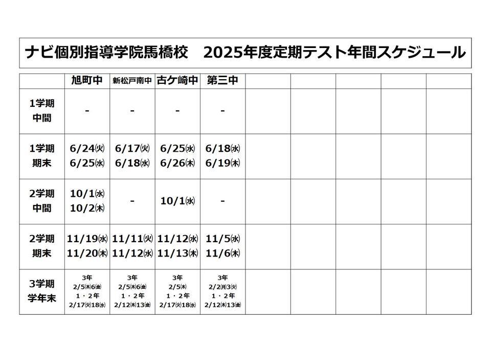 ナビ個別では定期試験1か月前より定期試験に向けたテスト対策授業を行います。