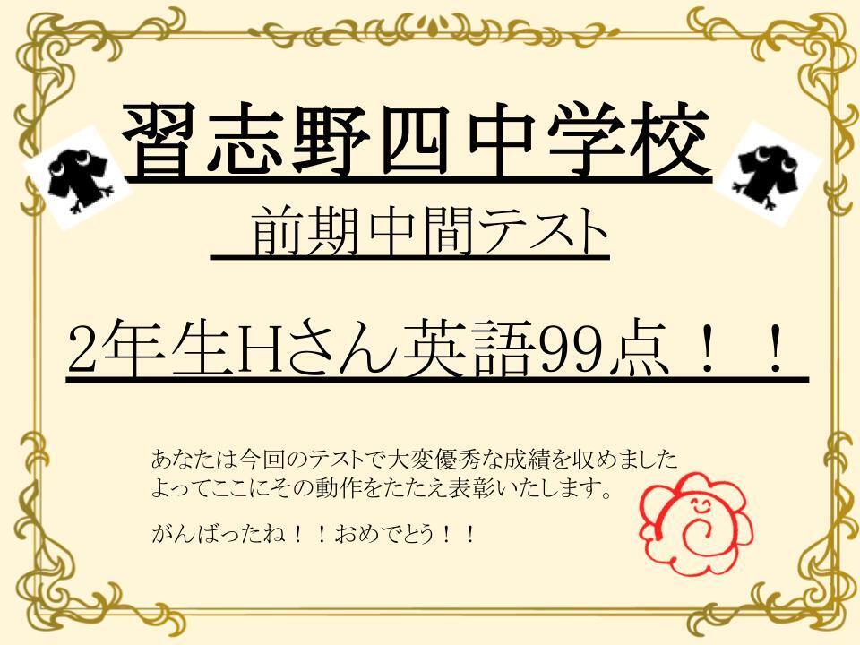 今日ご紹介するのは習志野第四中学校2年生Yさんです。