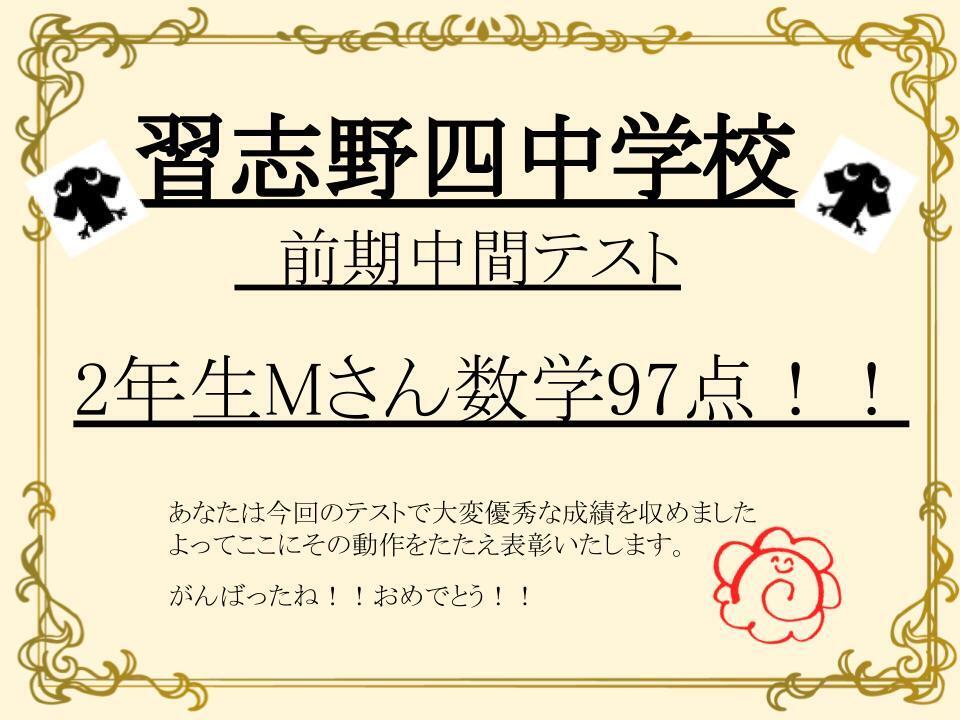 なんと数学97点!! すばらしいです!!!おめでとう!!!