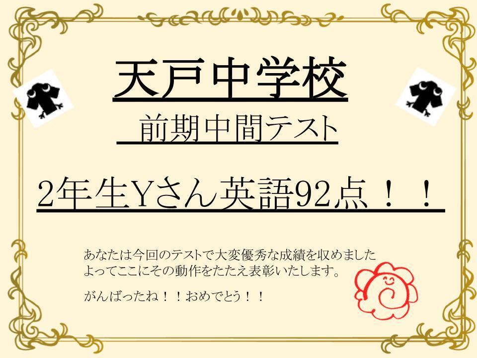 なんと英語92点!! すばらしいです!!!おめでとう!!!
