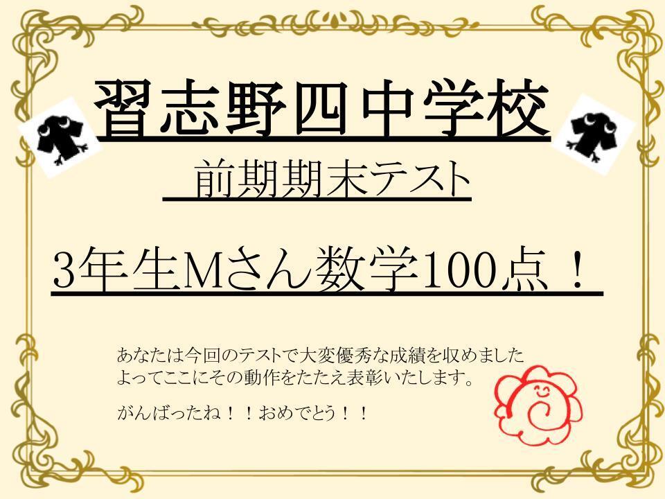 なんと数学100点!! すばらしいです!!!おめでとう!!!