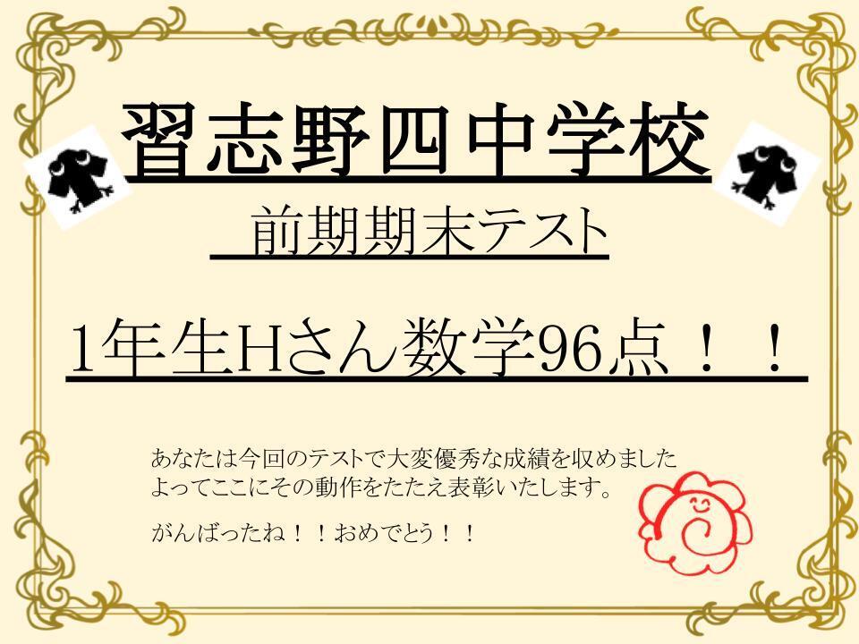 なんと数学96点!! すばらしいです!!!おめでとう!!!