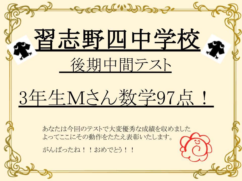 なんと数学97点!! すばらしいです!!!おめでとう!!!