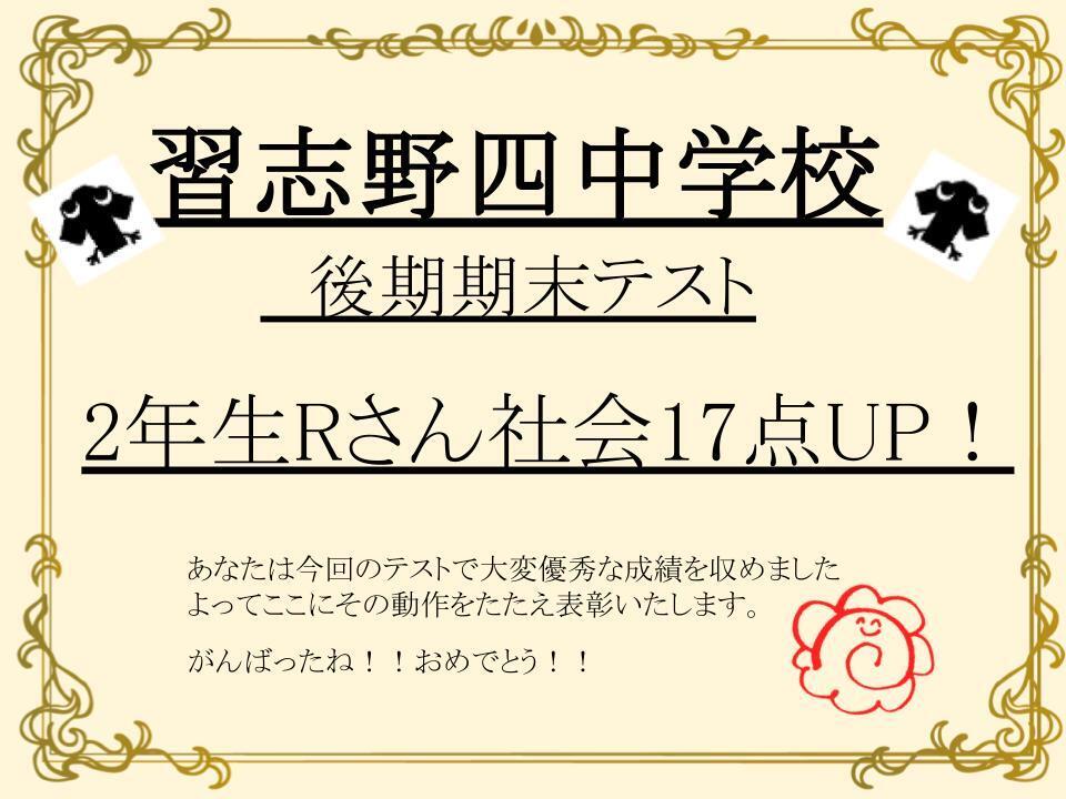 なんと社会17点UP!! すばらしいです!!!おめでとう!!!