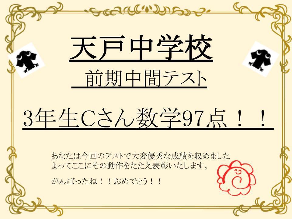 なんと数学97点!!! すばらしいです!!!おめでとう!!!