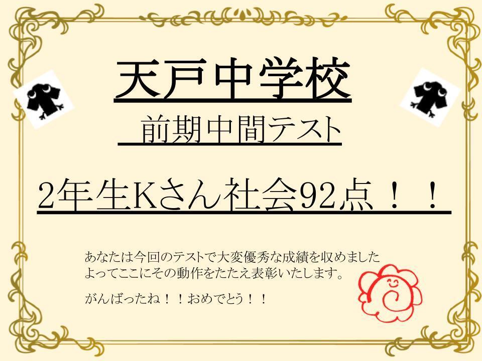 なんと社会92点!! すばらしいです!!!おめでとう!!!