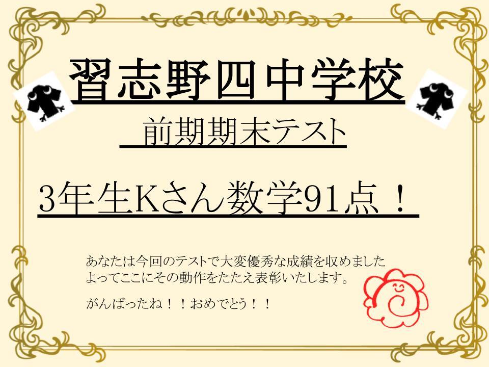 なんと数学91点!! すばらしいです!!!おめでとう!!!