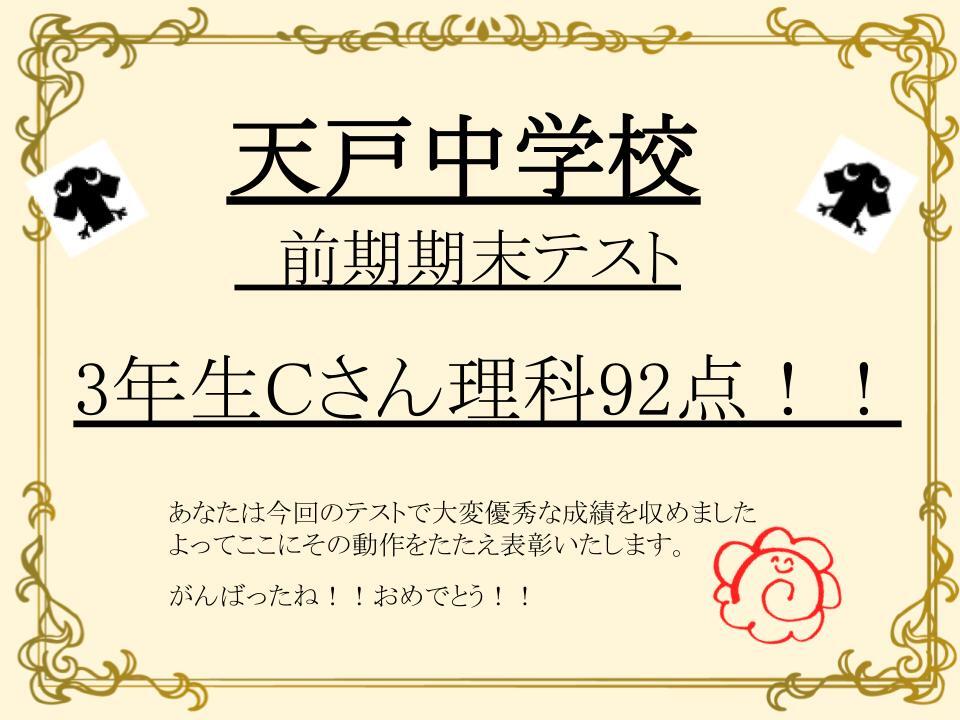 なんと理科92点!! すばらしいです!!!おめでとう!!!