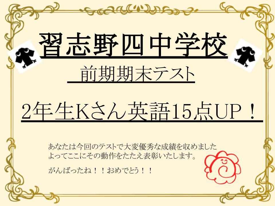 なんと英語15点UP!! すばらしいです!!!おめでとう!!!