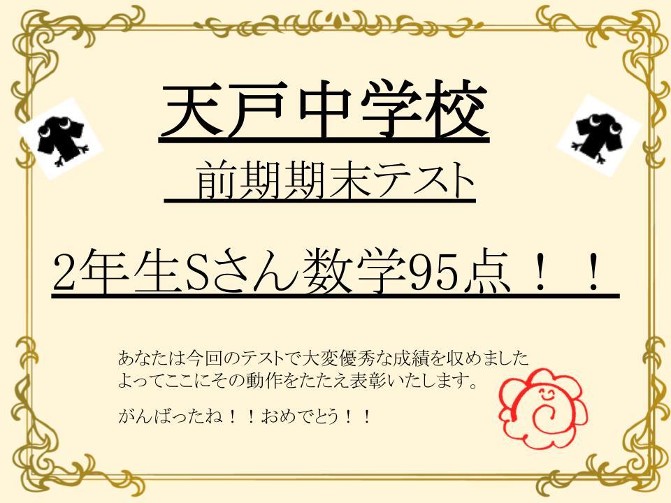 なんと数学95点!! すばらしいです!!!おめでとう!!!