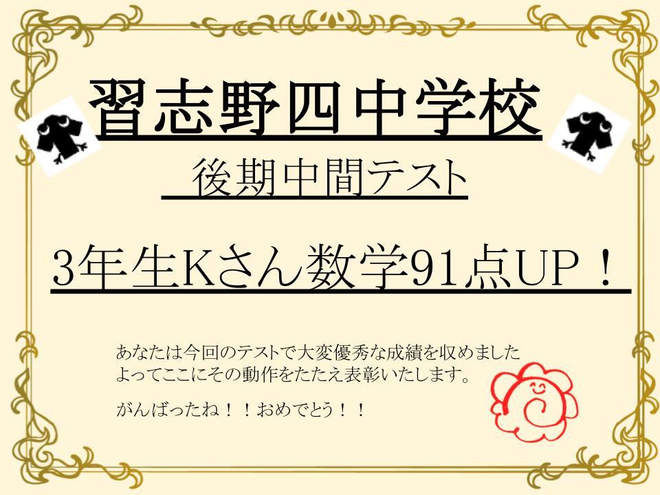 なんと数学91点!! すばらしいです!!!おめでとう!!!