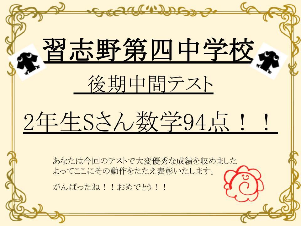 なんと数学94点!! すばらしいです!!!おめでとう!!!