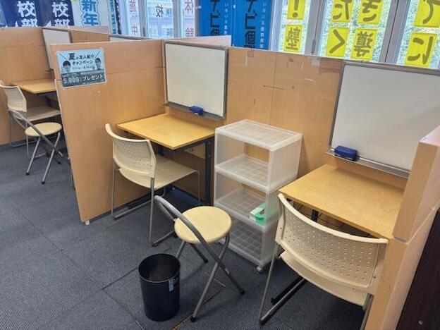 ナビ個別指導学院の授業は、個別の席ごとに設置された自分専用のホワイトボードで解き方や考え方を一緒に確認、それから生徒が問題を解くという「個別授業」スタイルです。
