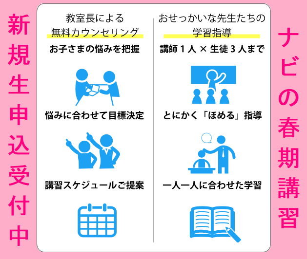 ナビ個別では、こういった少し耳の痛くなる話からやる気が出るポジティブな話まで、必要とあらばしっかり現状を踏まえて客観的にお話させていただきます。