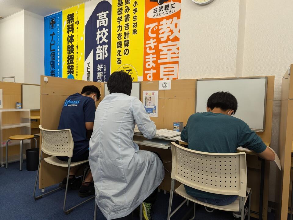 ナビ個別指導学院では、無料体験ガイダンスで、本人の苦手を分析し、なにが足りたいのかを把握します!