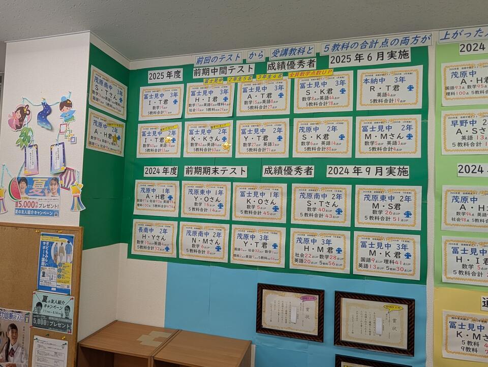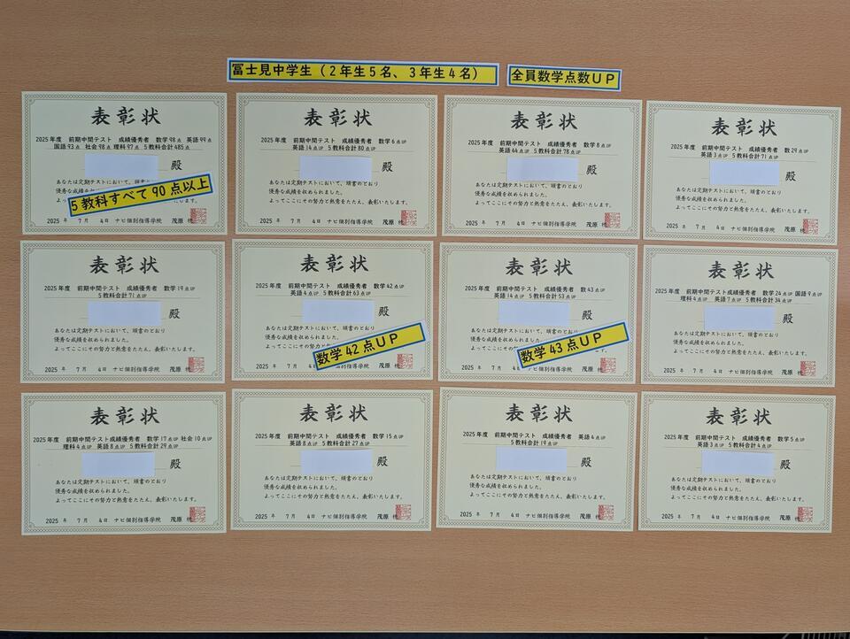 前期中間テストでは、授業教科や5教科合計点で点数アップ者が続出しています!