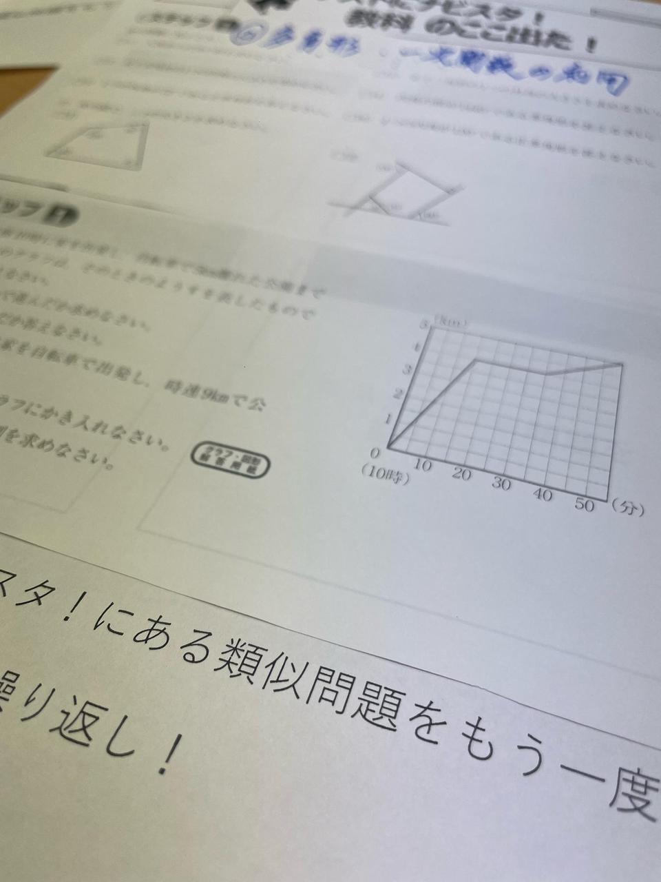 公式を理解暗記し、さくさくと問題をこなせた生徒さんは難しい一次関数の利用に時間を割くことが