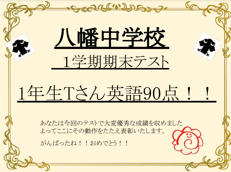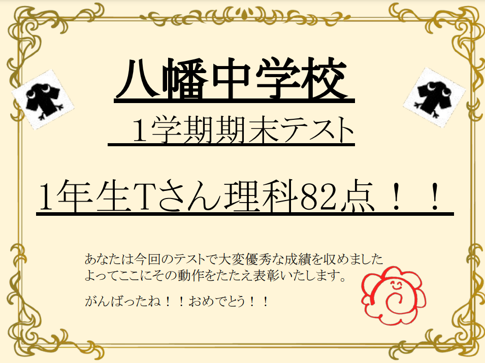 今日ご紹介するのは八幡中学校Tさんです。