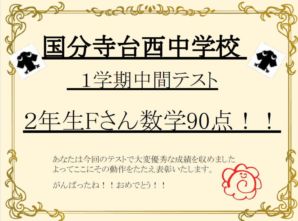 今日ご紹介するのは国分寺台西中学校Fさんです。