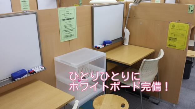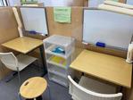 ナビ個別指導学院の授業は、個別の席ごとに設置された自分専用のホワイトボードで解き方や考え方を一緒に確認、それから生徒が問題を解くという「個別授業」スタイルです。