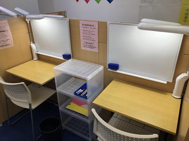ナビ個別指導学院の授業は、個別の席ごとに設置された自分専用のホワイトボードで解き方や考え方を一緒に確認、それから生徒が問題を解くという「個別授業」スタイルです。