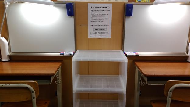 ナビ個別指導学院の授業は、個別の席ごとに設置された自分専用のホワイトボードで解き方や考え方を一緒に確認、それから生徒が問題を解くという「個別授業」スタイルです。