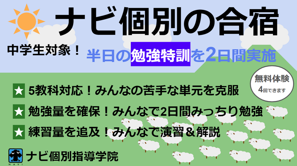 ナビ個別の合宿は中学生対象で、2日にかけて行います。