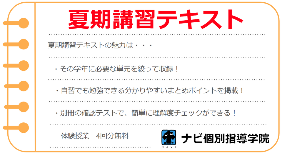 ナビ個別で夏期講習テキストを使って、夏休みに一緒に勉強しませんか?