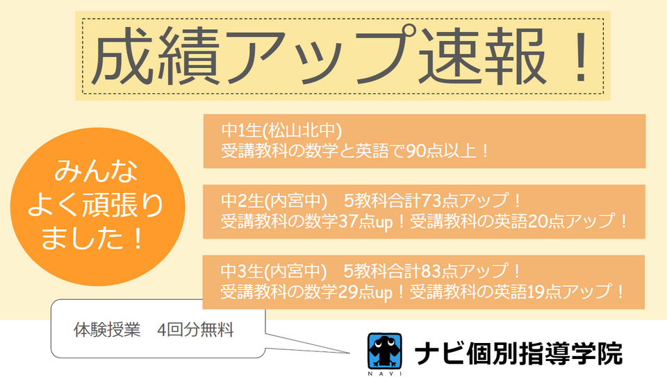 ナビ個別指導学院 松山北校の生徒は、頑張ってくれました。