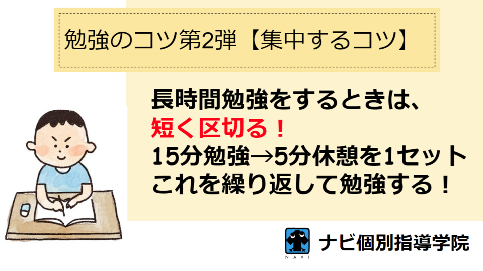 本日は、勉強のコツ第2弾【集中するコツ】のお話をさせていただきます。