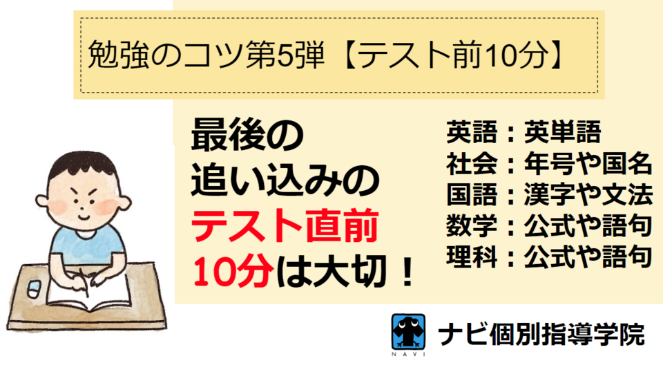 本日は、勉強のコツ第5弾【テスト前10分】のお話をさせていただきます。