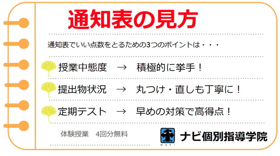 通知表の点数を上げることを意識して頑張っていきましょう。