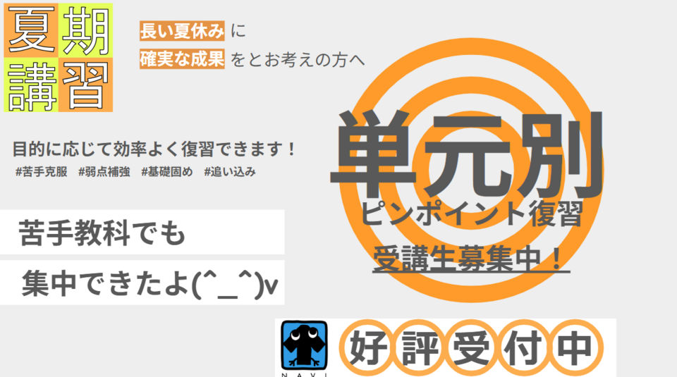 ナビ個別の「夏期講習」で苦手を得意に変えてみませんか?