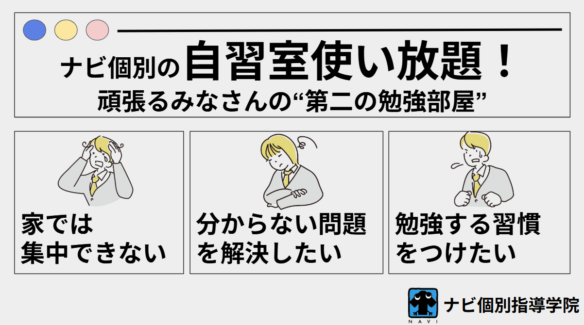 どんどん自習室を利用して、ナビ個別指導学院で成績を伸ばしていきましょう。