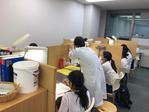 ナビ個別指導学院の授業は、個別の席ごとに設置された自分専用のホワイトボードで解き方や考え方を一緒に確認、それから生徒が問題を解くという「個別授業」スタイルです。