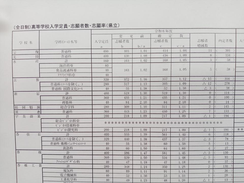 昨日、福岡県公立入試の最終倍率が発表されました。