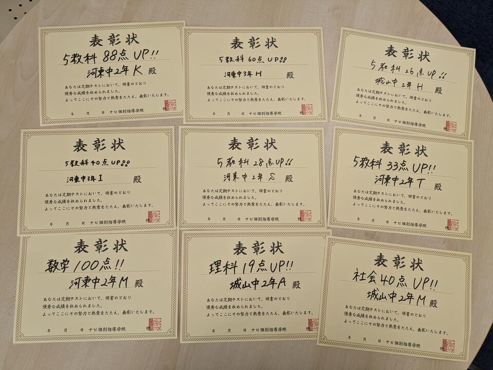 複数の中学校の生徒様がお越しになっていらっしゃるので、それぞれの学校の範囲表を見て作成しています。