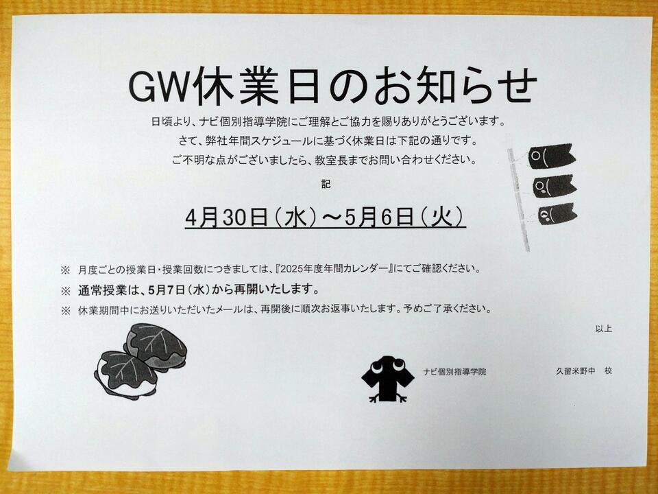 ナビ個別指導学院久留米野中校です。