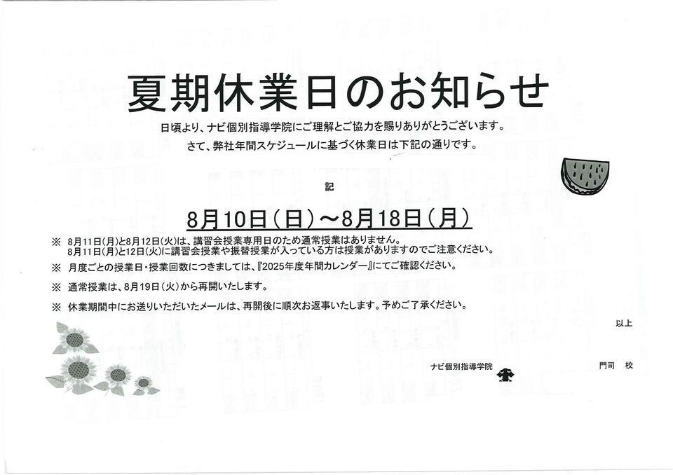 日頃より、ナビ個別指導学院にご理解とご協力を賜りありがとうございます。