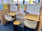 ナビ個別指導学院の授業は、個別の席ごとに設置された自分専用のホワイトボードで解き方や考え方を一緒に確認、それから生徒が問題を解くという「個別授業」スタイルです。