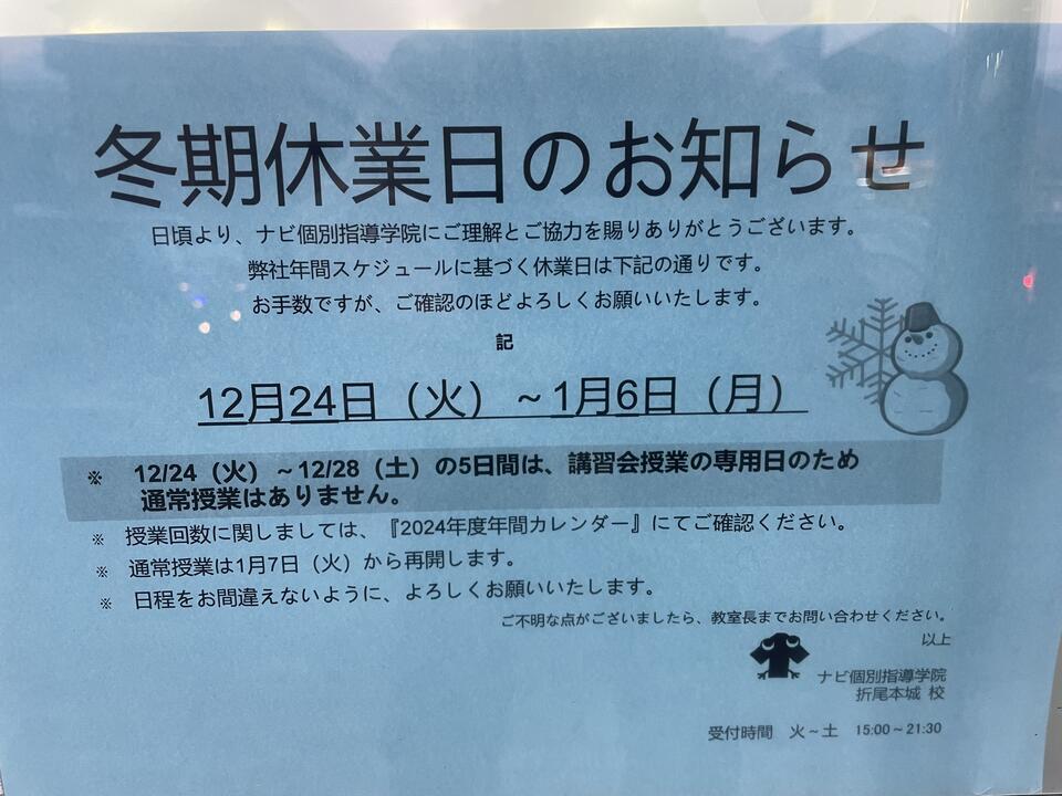 今回は夏期期間中の休校日のお知らせです!!