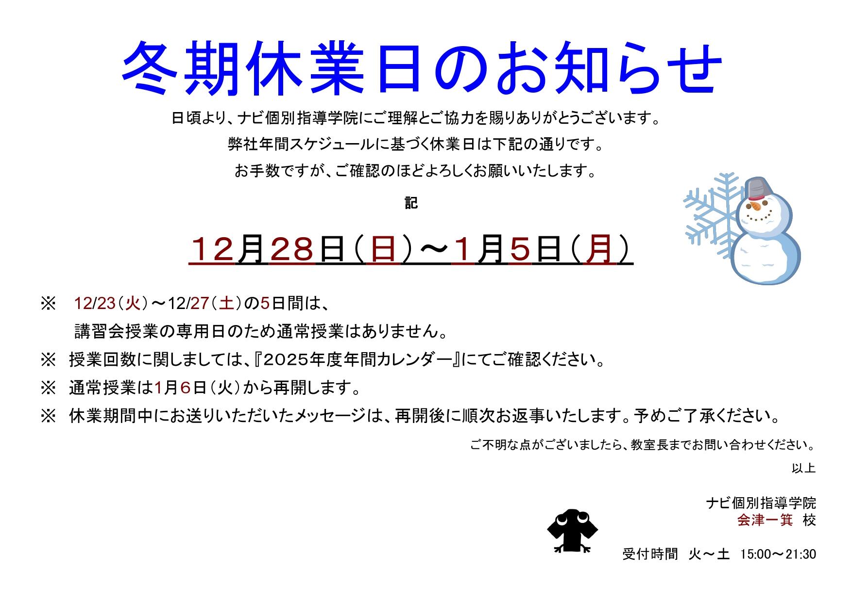 来年も、ナビ個別指導学院会津一箕校をよろしくお願いいたします。