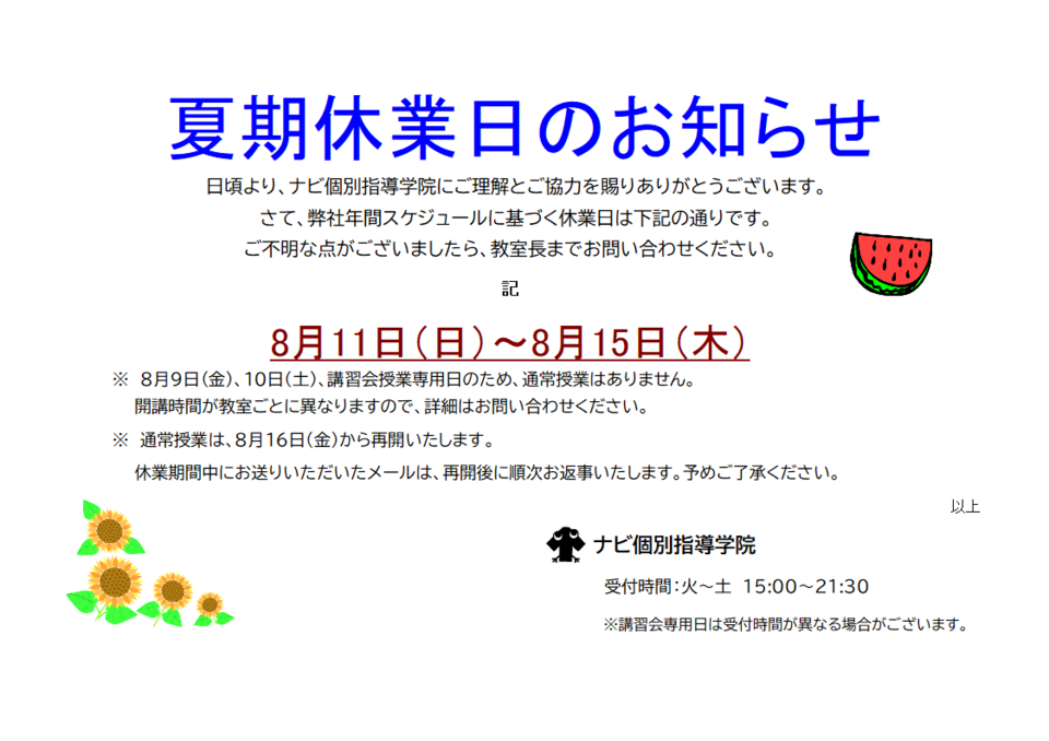 会津若松市の個別塾・学習塾といえば、ナビ個別指導学院会津若松校!