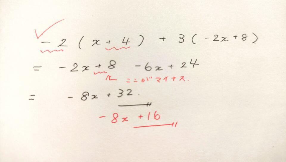 途中計算を書いている人は、「ここで符号ミスをしていた。」と答えました。