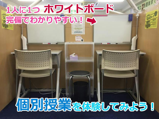 ナビ個別指導学院の授業は、個別の席ごとに設置された自分専用のホワイトボードで解き方や考え方を一緒に確認、それから生徒が問題を解くという「個別授業」スタイルです。