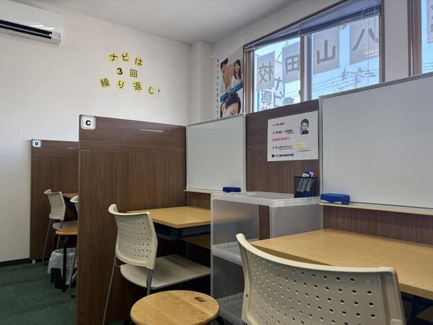 ナビ個別指導学院の授業は、個別の席ごとに設置された自分専用のホワイトボードで解き方や考え方を一緒に確認、それから生徒が問題を解くという「個別授業」スタイルです。