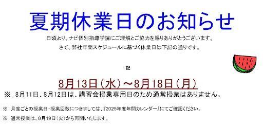 日頃より、ナビ個別指導学院にご理解とご協力を賜りありがとうございます。
