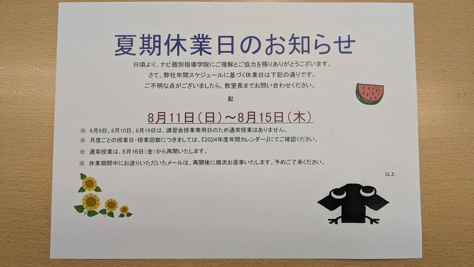日頃より、ナビ個別指導学院にご理解とご協力を賜りありがとうございます。
