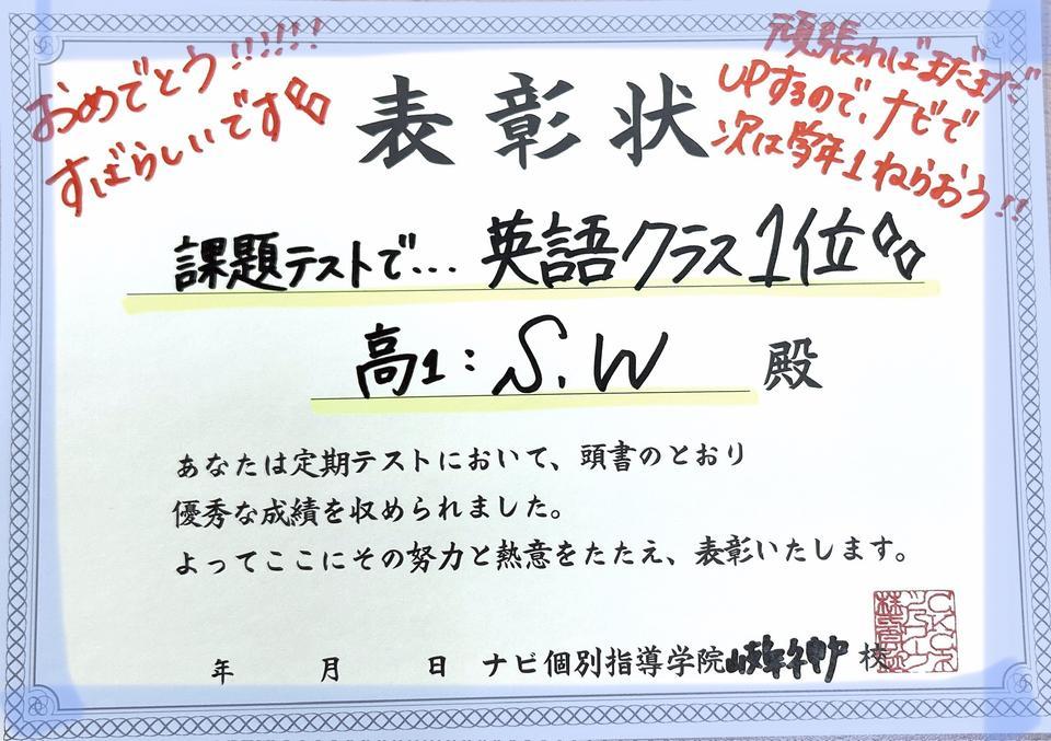 なんと今回!そんな苦手な英語でクラス1位という素晴らしい結果を残してくれました!!!